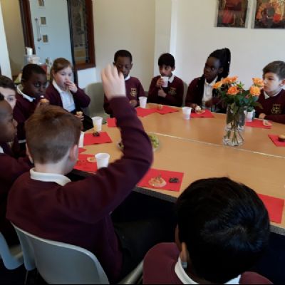 The Headteacher, Mrs Rolph, hosted a tea party for two pupils from each class at the end of term. The pupils were selected by their class teacher as a reward for their efforts, behaviour, achievement or attitude to learning over the spring term.