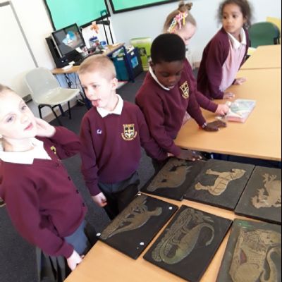 The dinosaurs and the unicorn were particular favourites and the knight rubbing continued the Year 1 topic of Kings and Queens.
