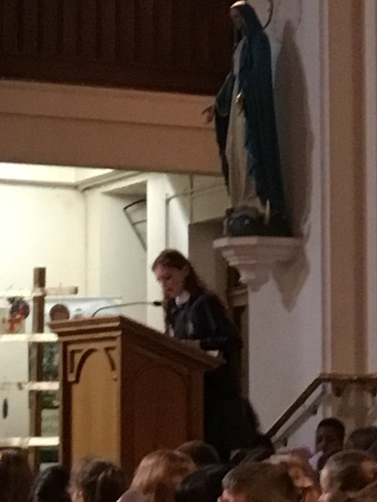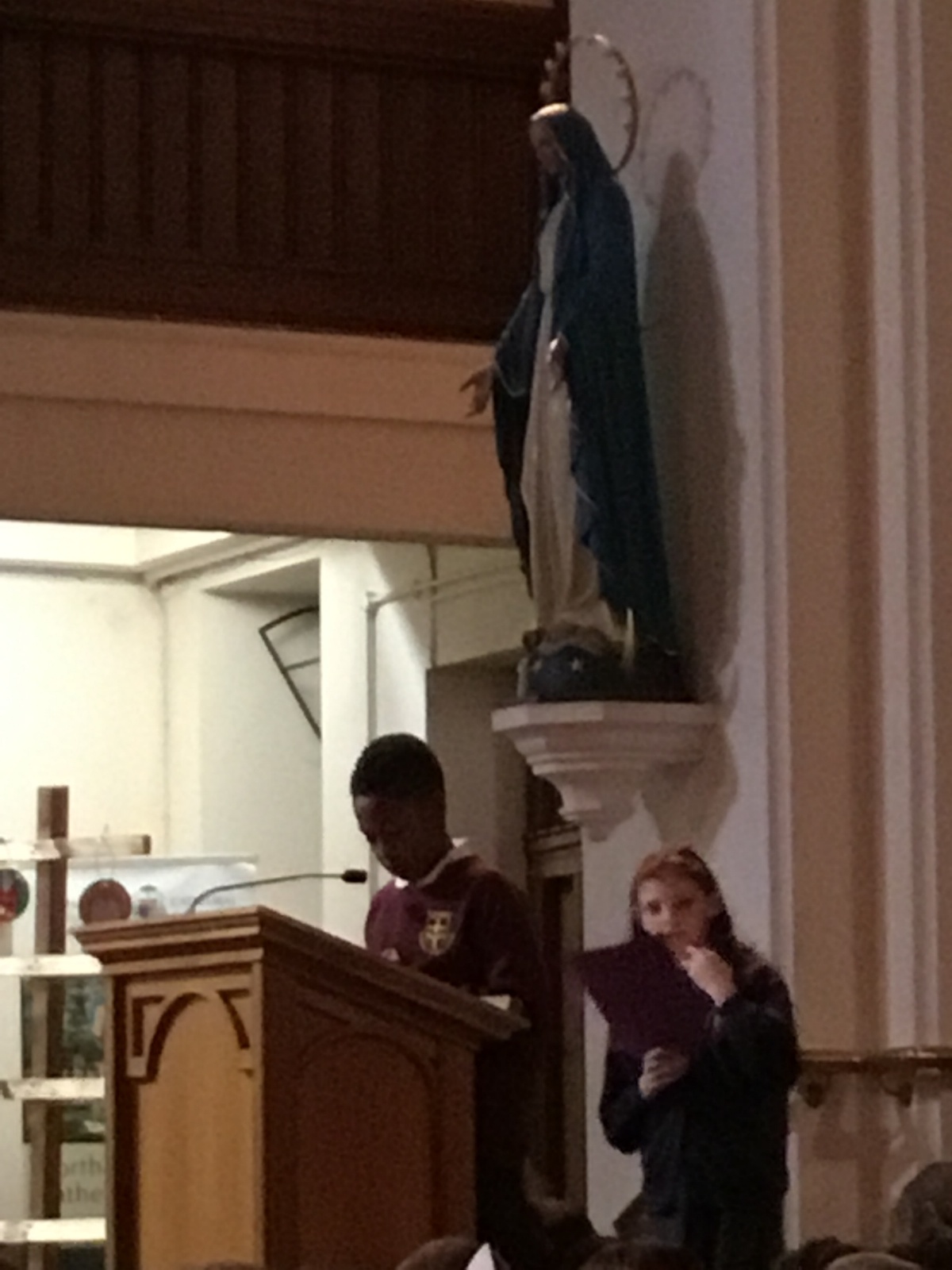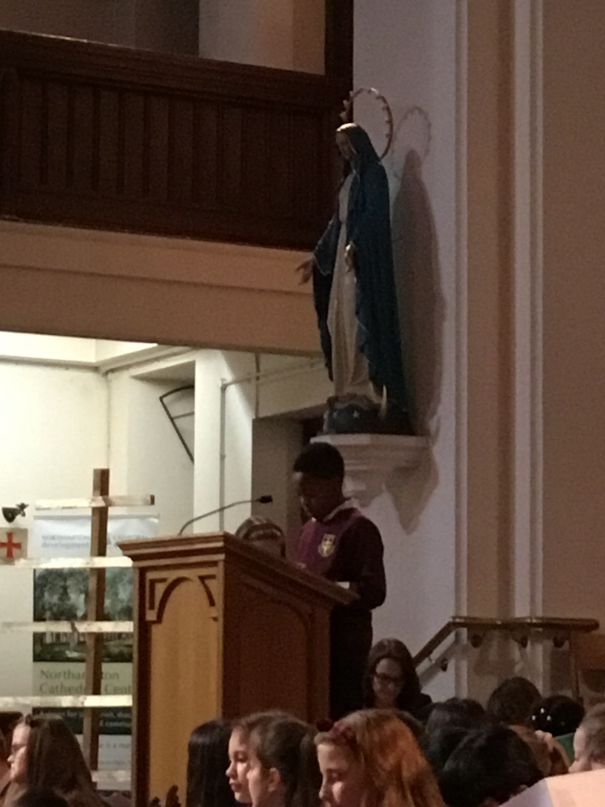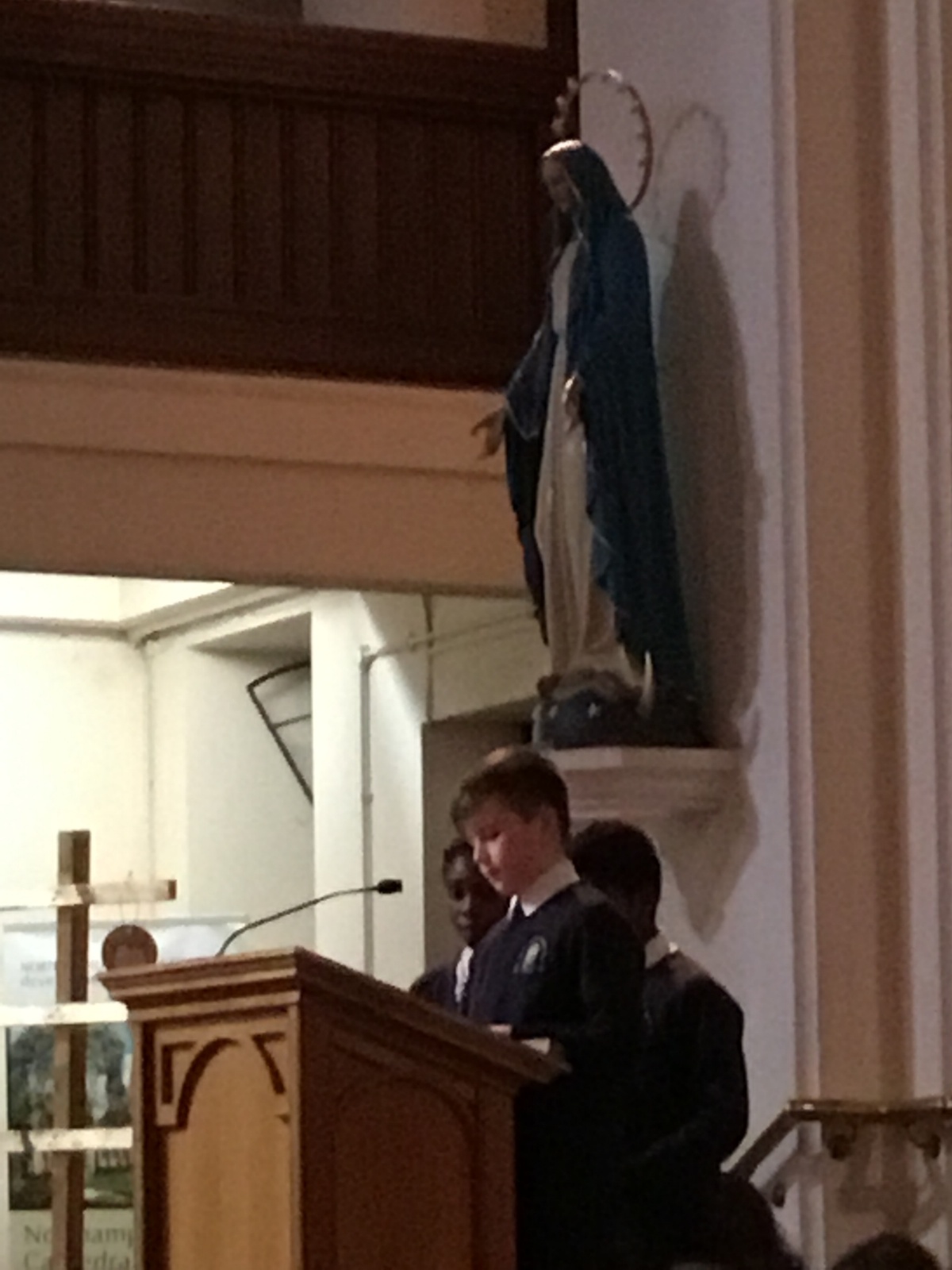 We have been lucky enough to be invited to take part in two Advent Services in Northampton this week. The first, on Monday 10th December, was held at Christchurch for The Bible Society, an organisation which aims to provide the opportunity to bring the Bible to everybody across the world. The evening was a great success with pupils from St Gregory’s reading and students from Northampton School for Girls providing the music. The Year 5s and 6s worked hard to prepare their readings and read clearly and confidently to a busy church, demonstrating why St Gregory’s has been asked to supply readers for this event for the past ten years. This year’s readers were congratulated on their clarity and confidence by Father Andrew and many members of the congregation.