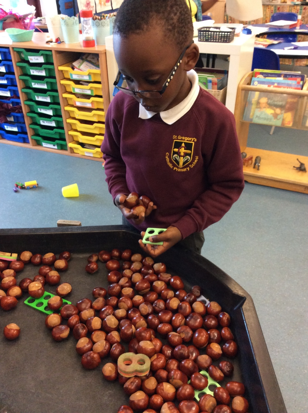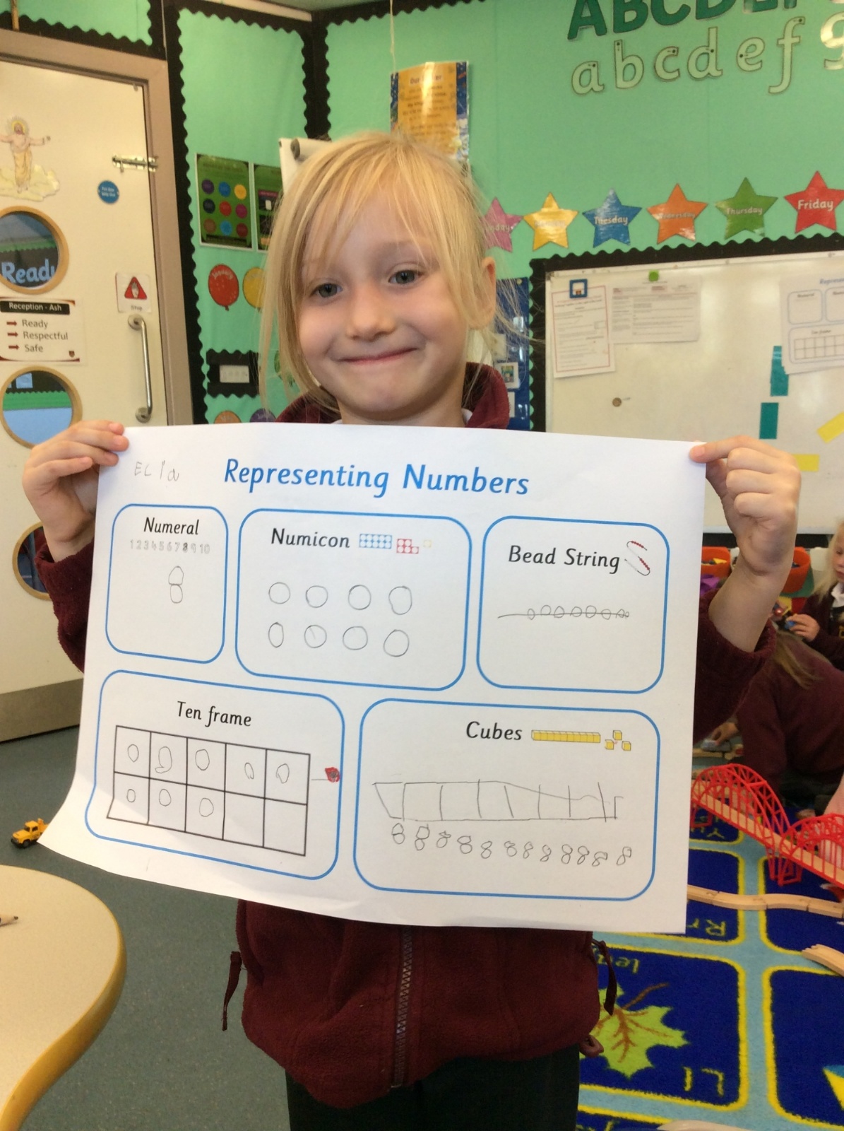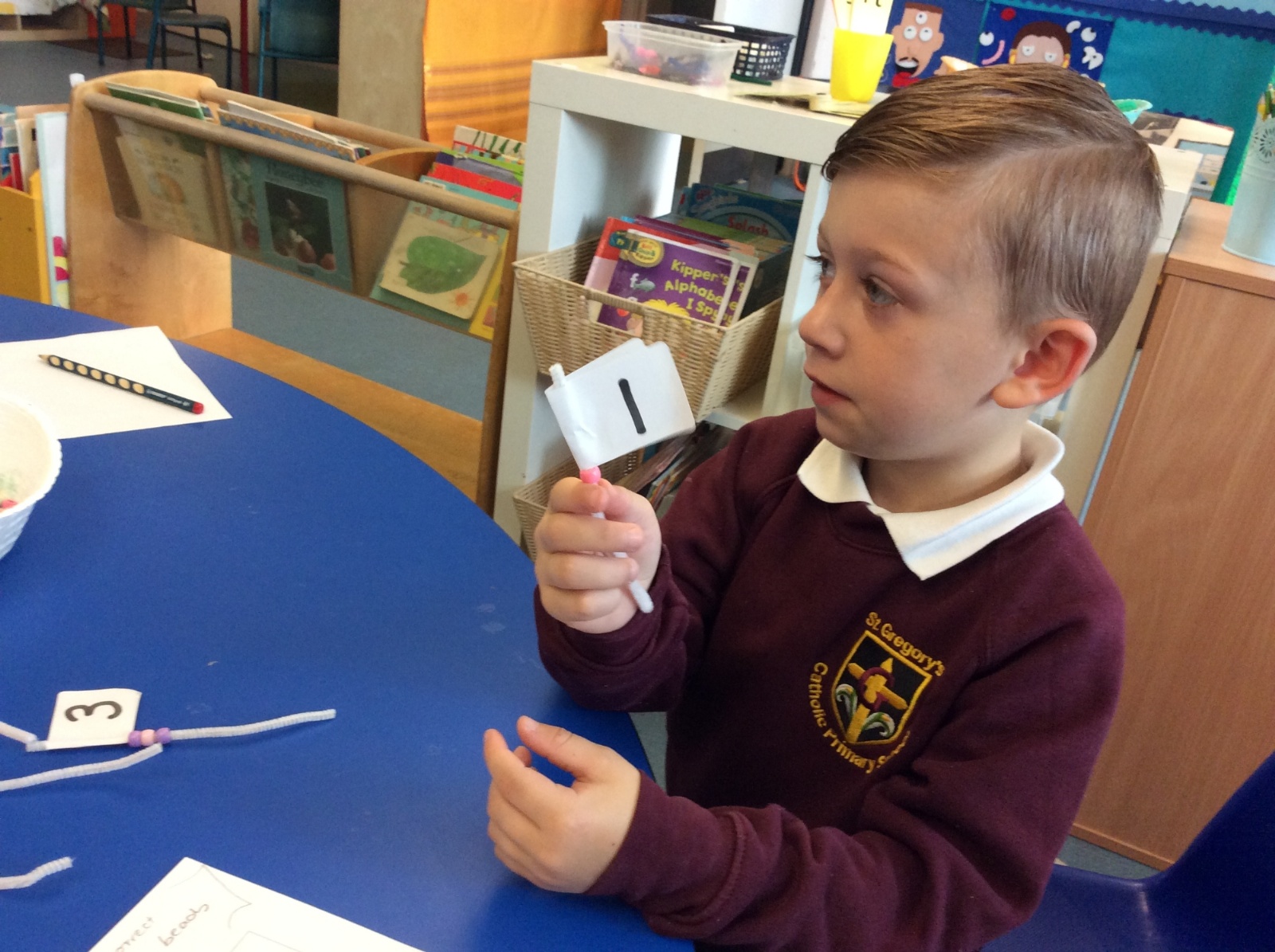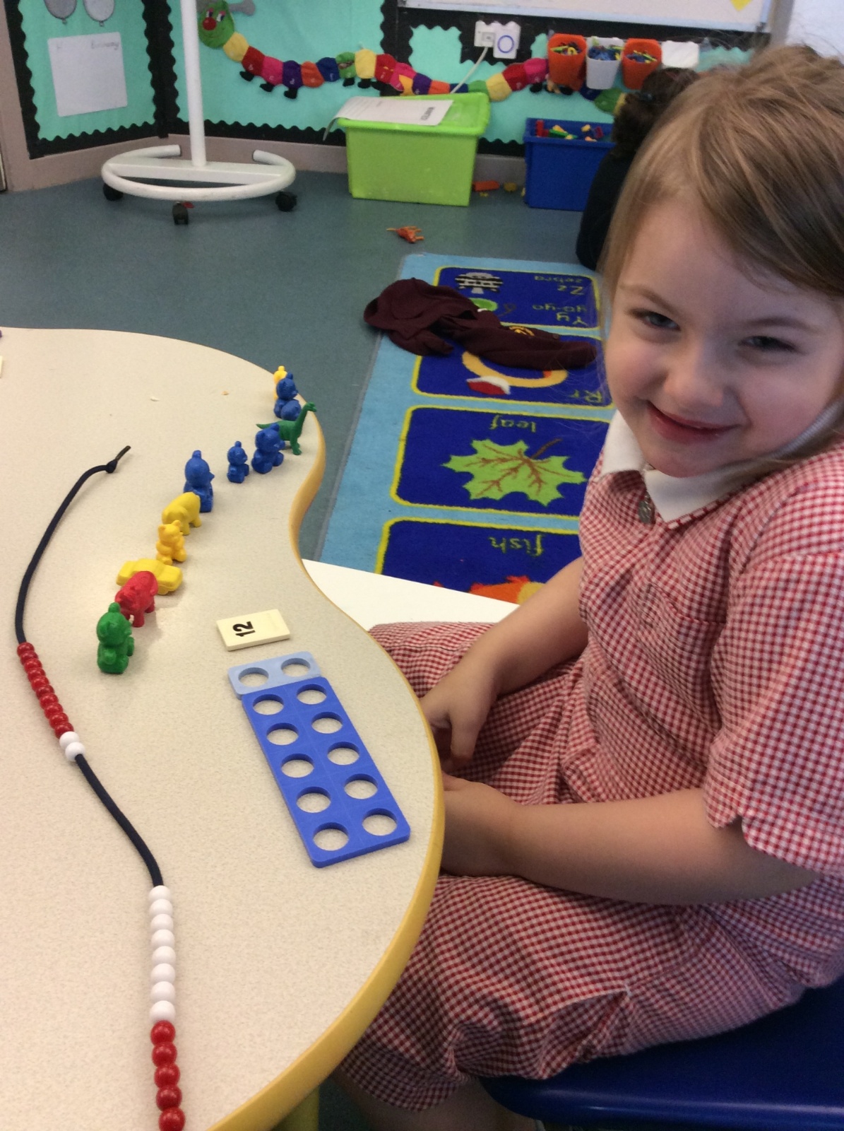 We had fun using a variety of equipment to represent a number; we used number bead strings, conkers and beads on flag handles. We were very proud of our achievements and enjoyed completing our worksheets too!