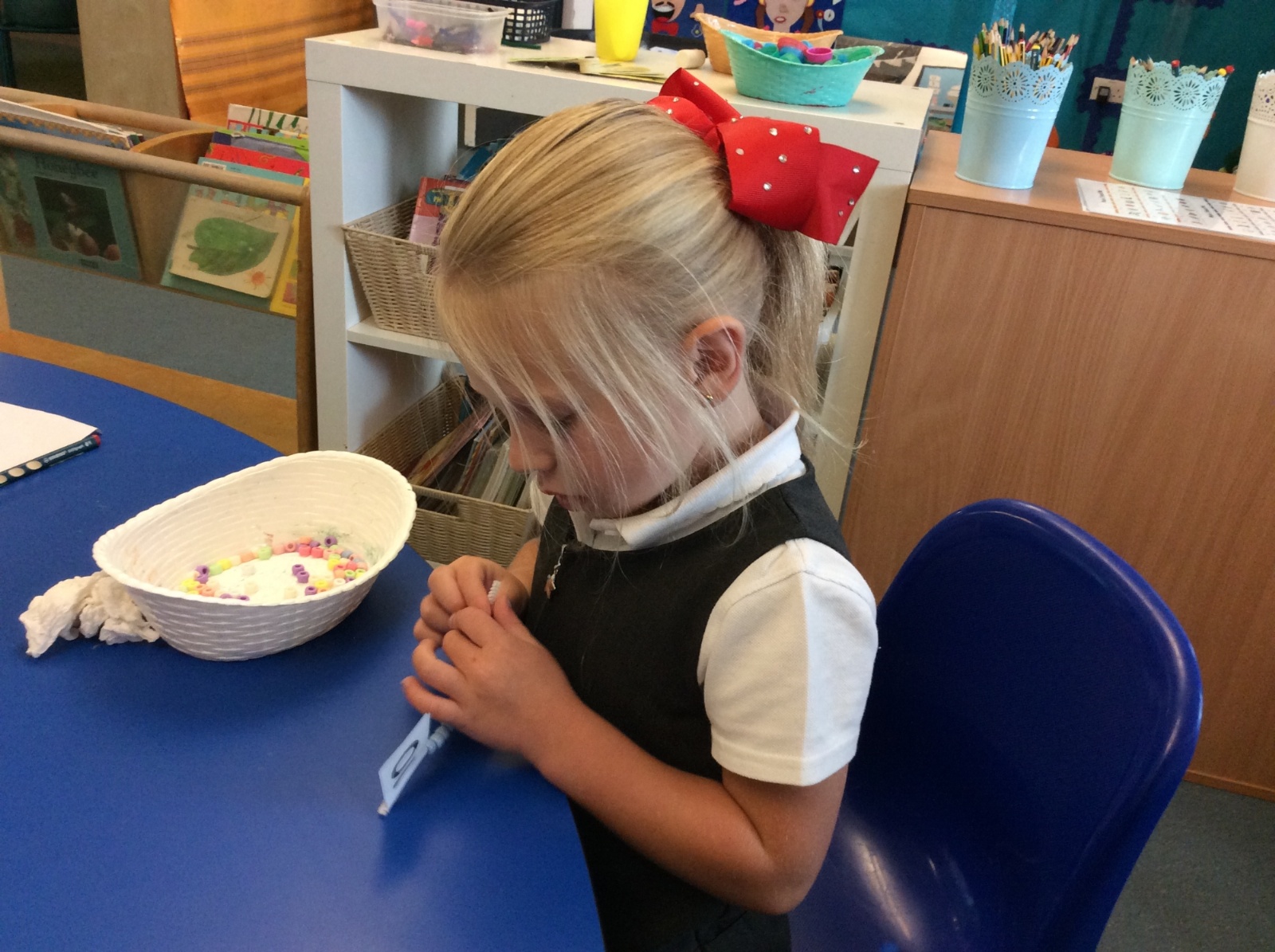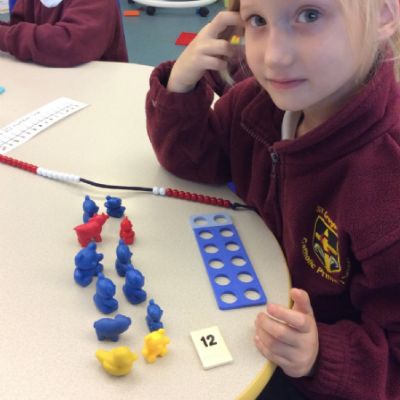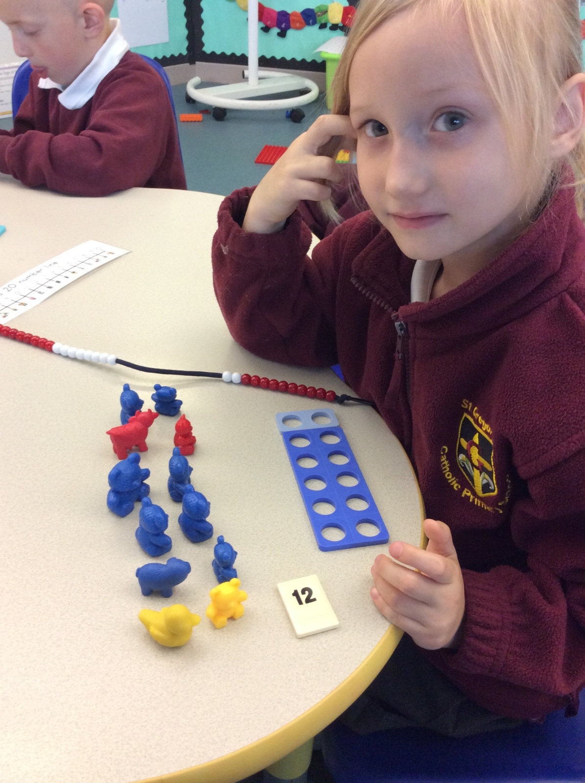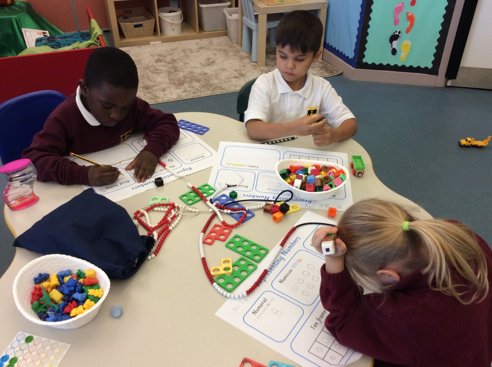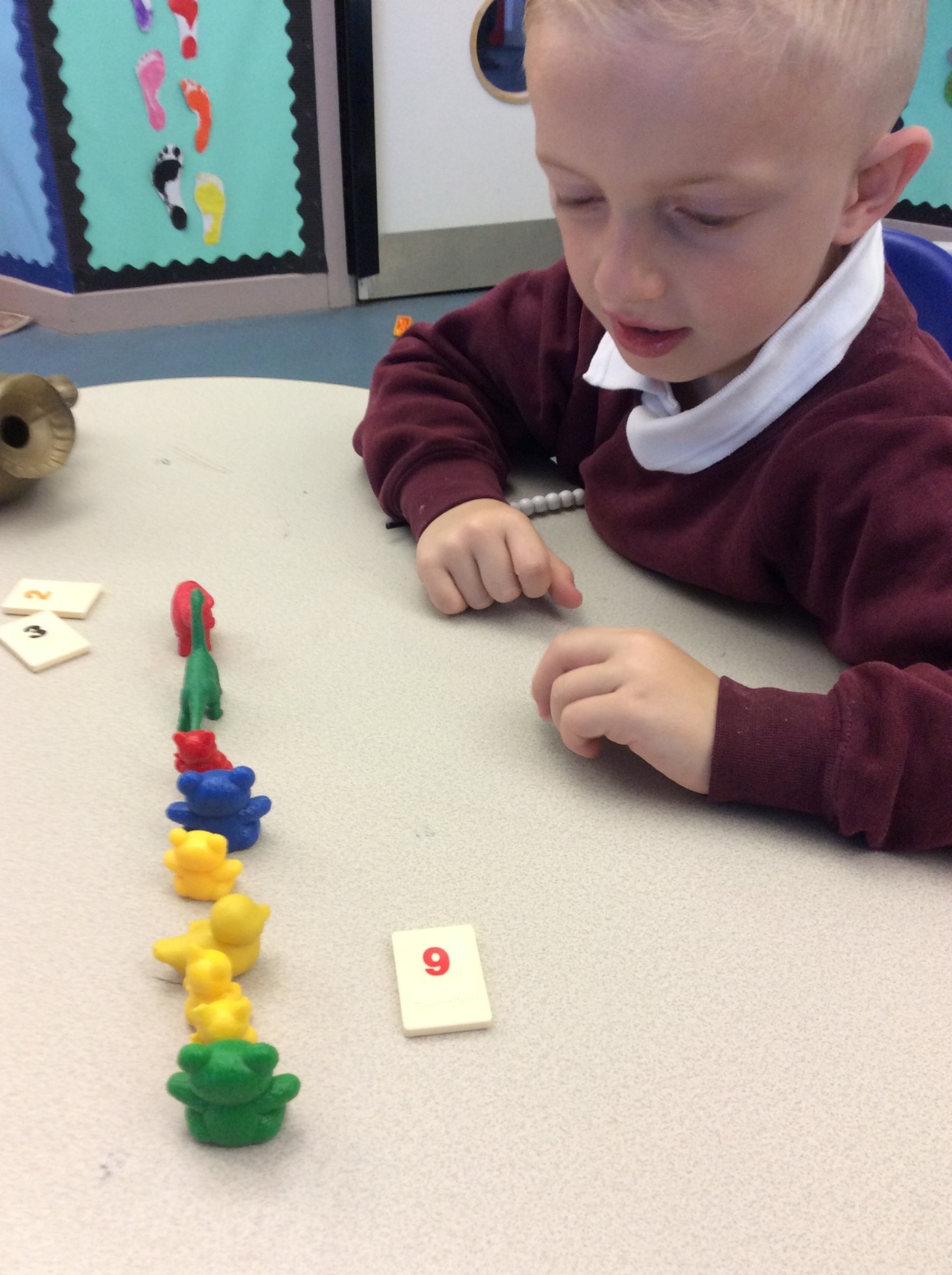 We had fun using a variety of equipment to represent a number; we used number bead strings, conkers and beads on flag handles. We were very proud of our achievements and enjoyed completing our worksheets too!