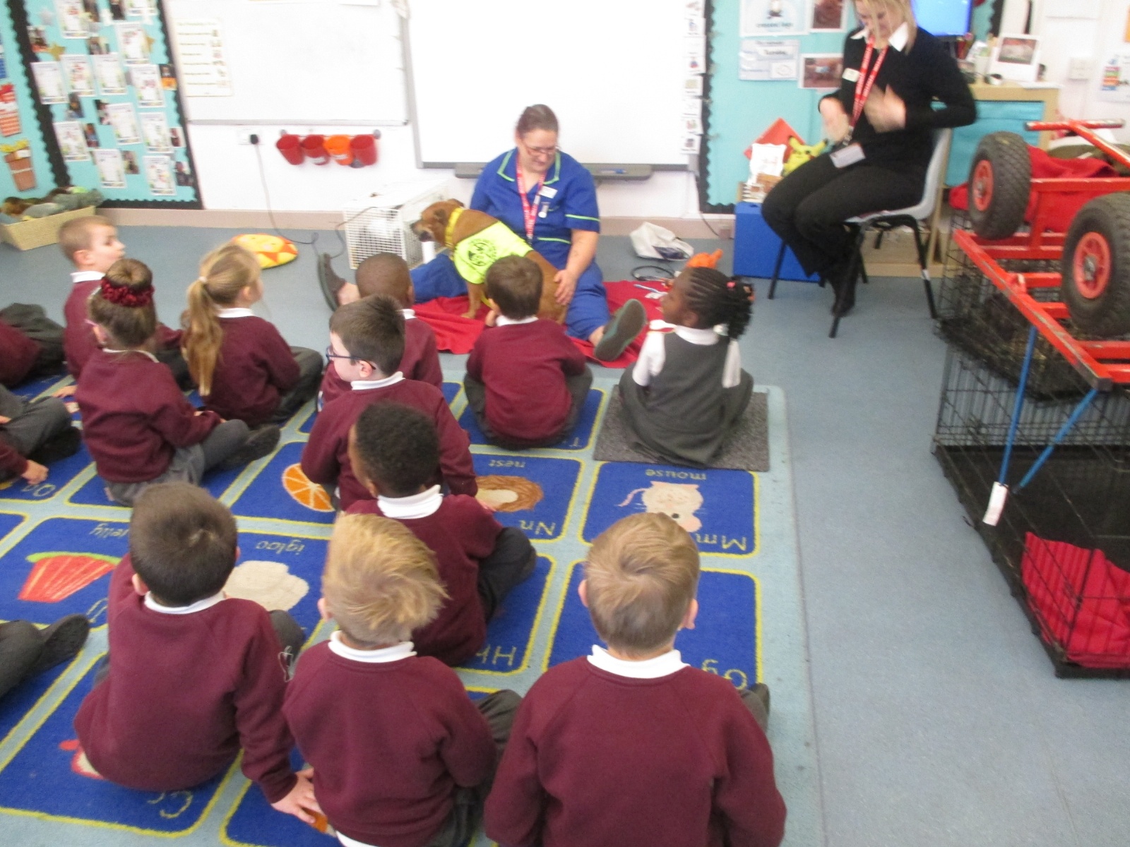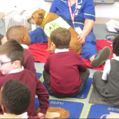 Companion Care Vets came in to talk to us about the importance of taking your pet to the vet if they’re ill. We met a therapy dog, tortoise and rabbit. Sally the veterinary nurse demonstrated how to brush the dog and even clean her teeth! All of the children then had the opportunity to stroke the animals.