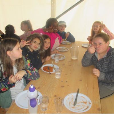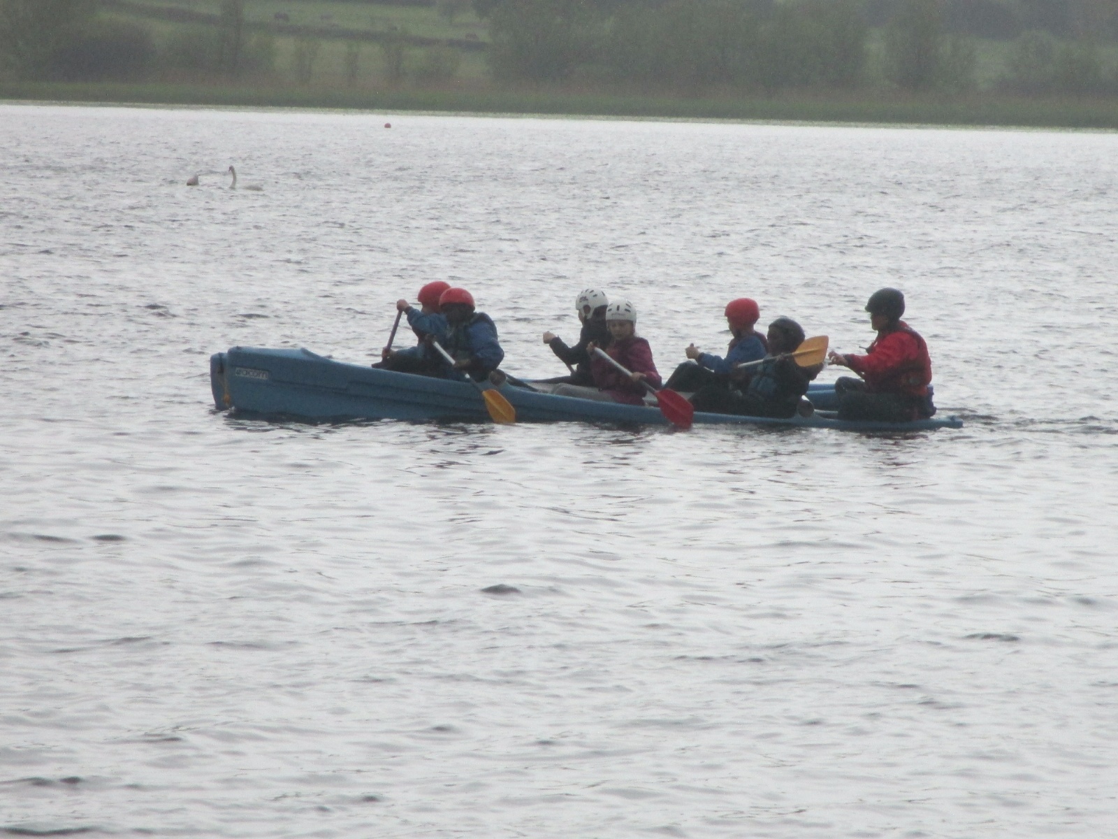 Walking for three hours (well, 20 minutes), we got to the lake and kitted up. Six in a boat, speeding across the waves, around the island and on to the glory of the finish line (after a brief pause to release some liquid from the red boat). Difficult at first but we soon got into a rhythm and will be rowing for GB at the next Olympics. How did we feel at the end? DRENCHED!